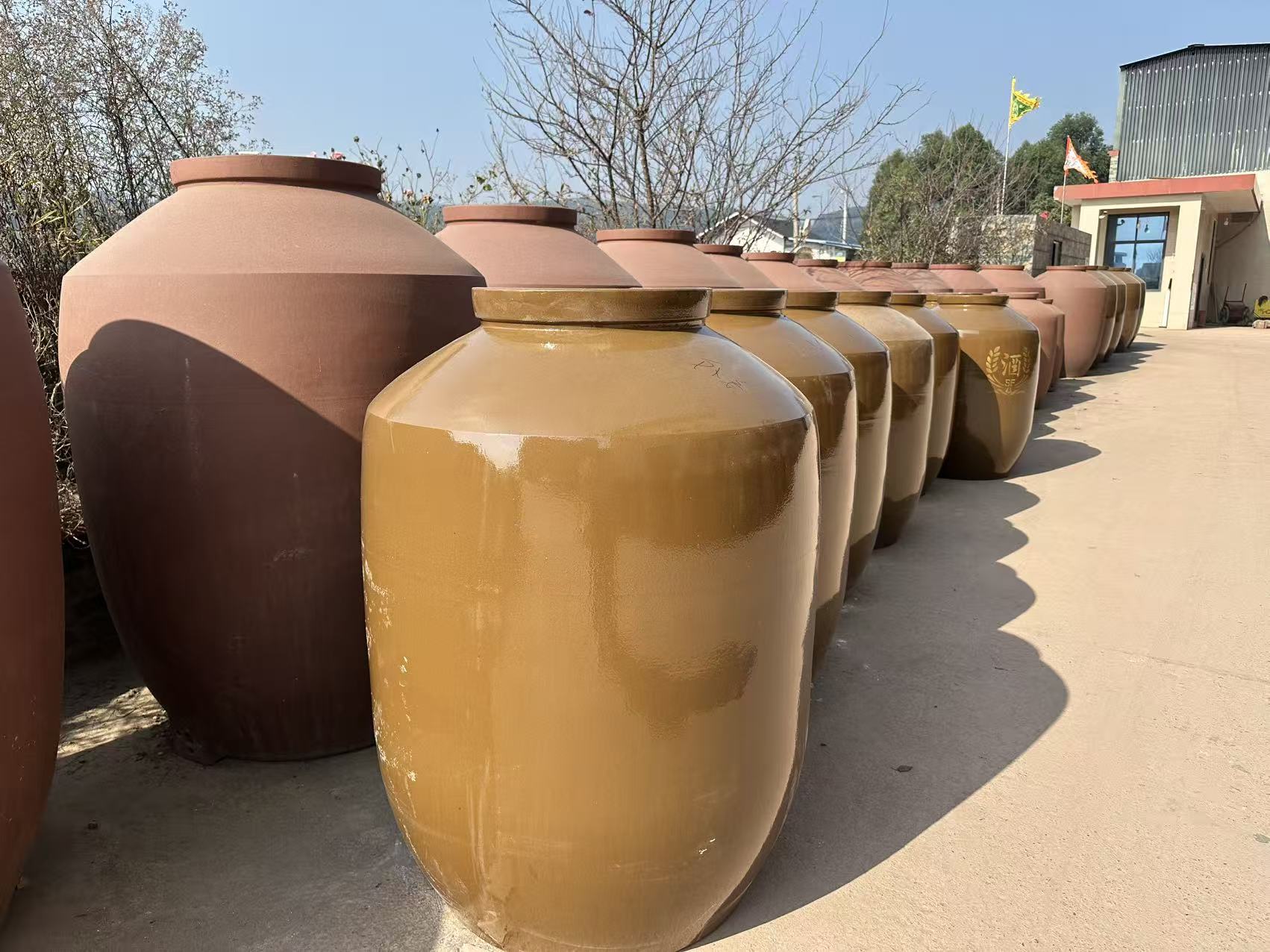 Compared to glass or plastic wine containers, our clay wine jars are much sturdier and thicker. Whether placed indoors or outdoors, they can withstand wind and rain and are not easy to break or tip over.